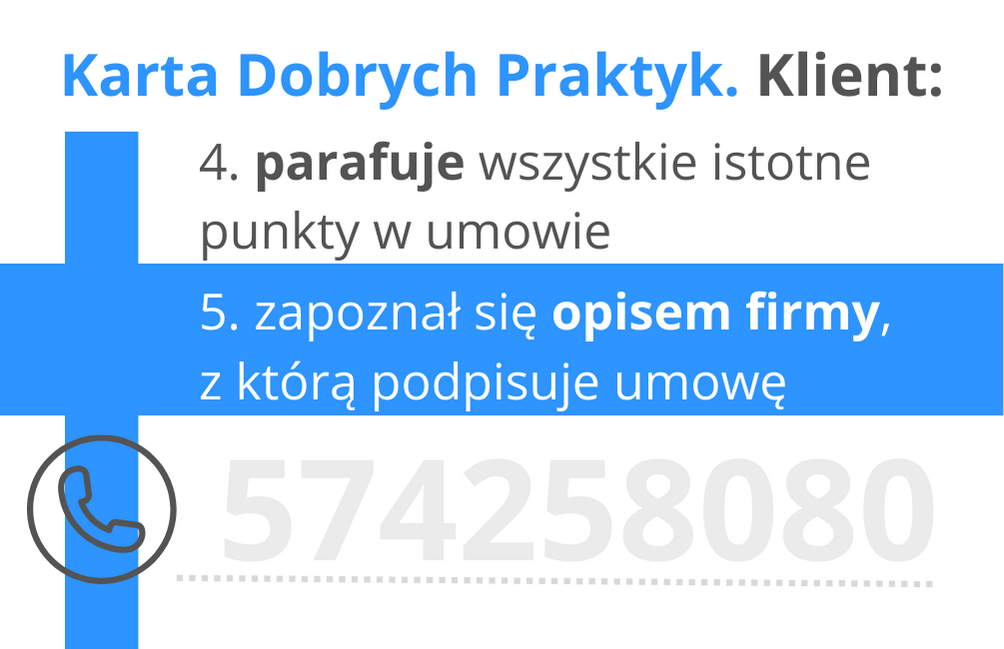 5. Klient zapoznał się z opisem firmy, z którą podpisuje umowę